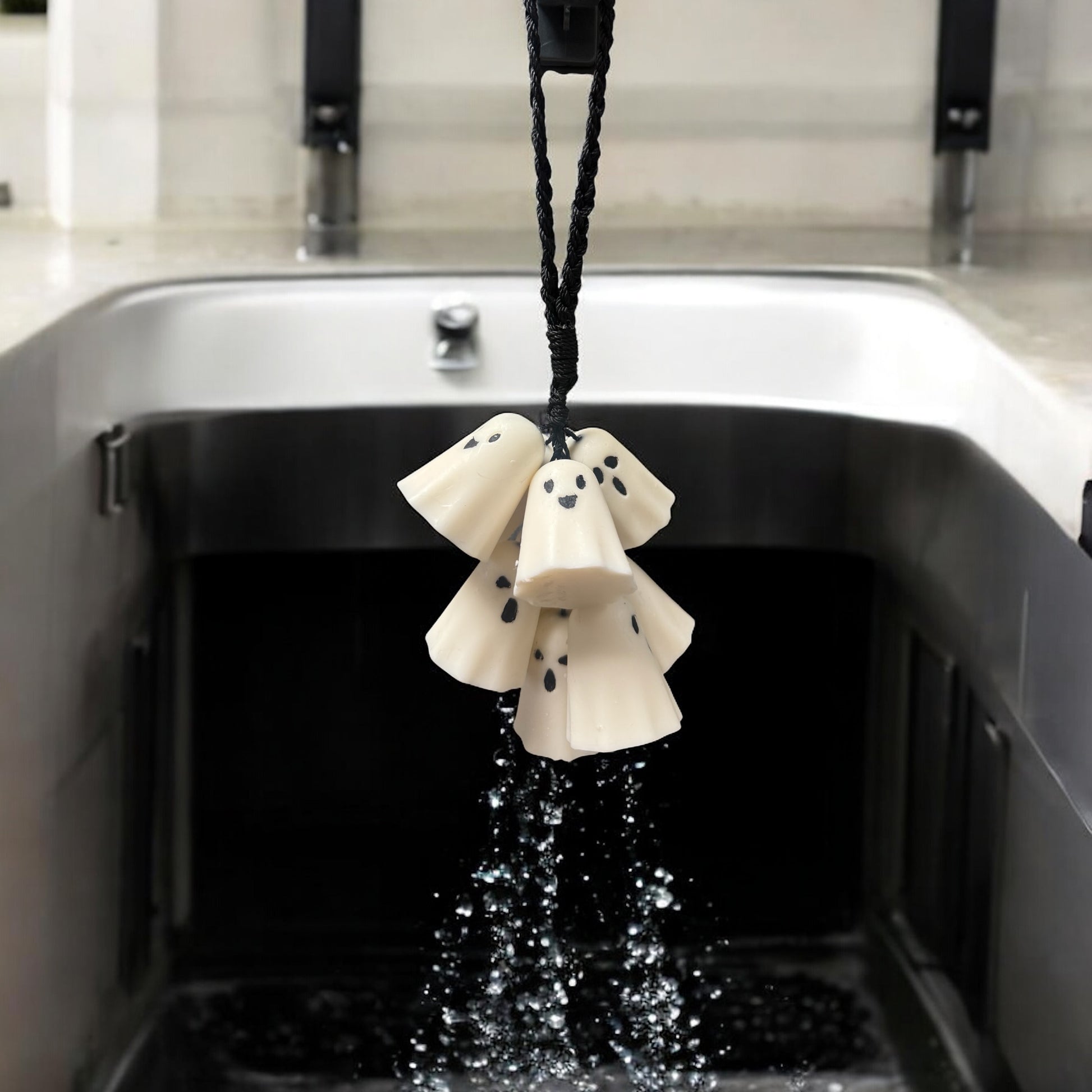 Design: Adorably eerie ghost shape with a built-in loop for easy hanging in showers or on hooks.